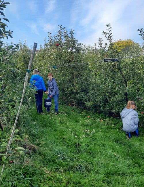 Die 1. Klasse der MNS Ehrenhausen durfte auf Einladung der Familie Breg in Weinleiten auf ihrer Obstplantage Äpfel für den heurigen Schulapfelsaft ernten.