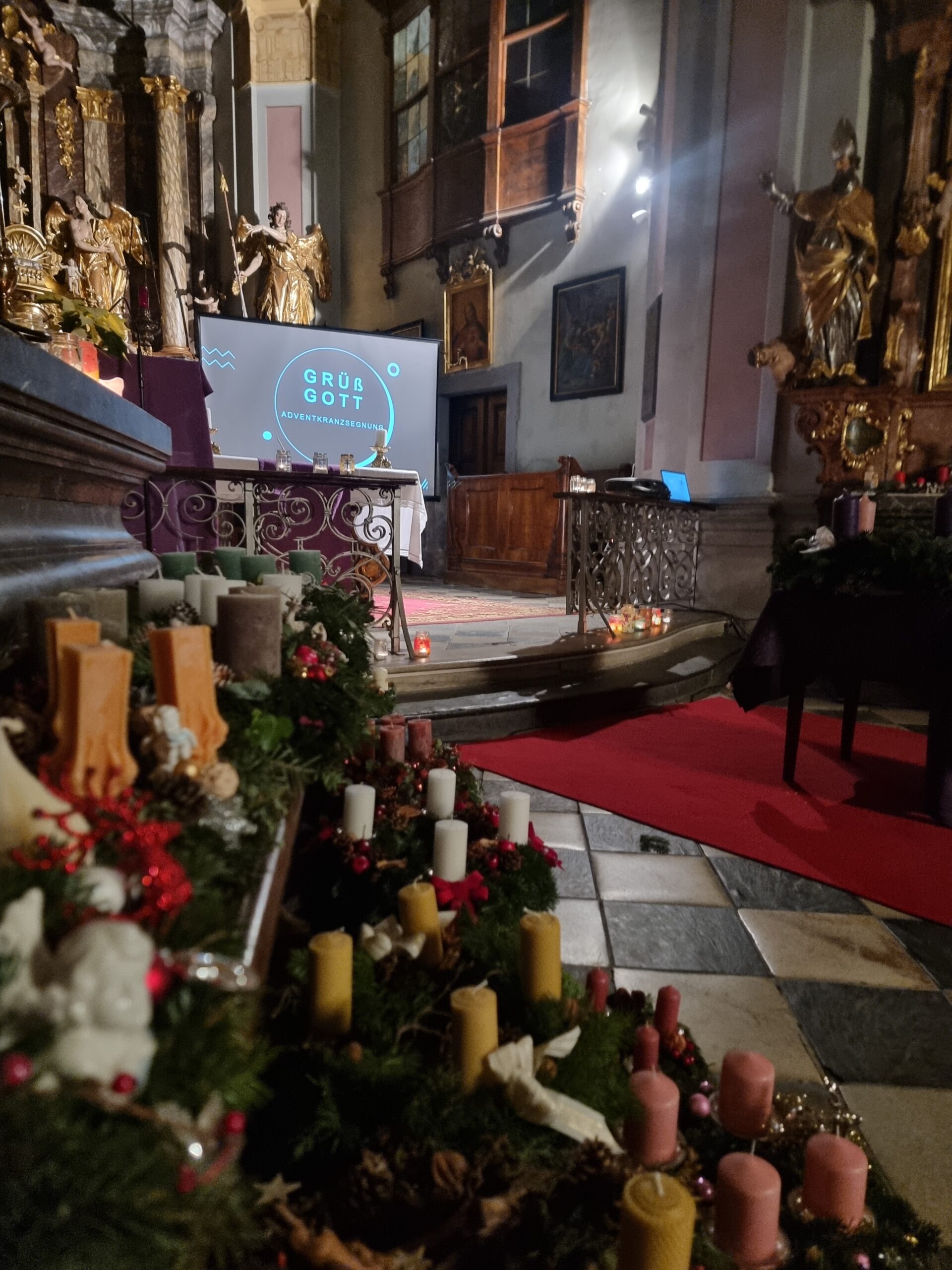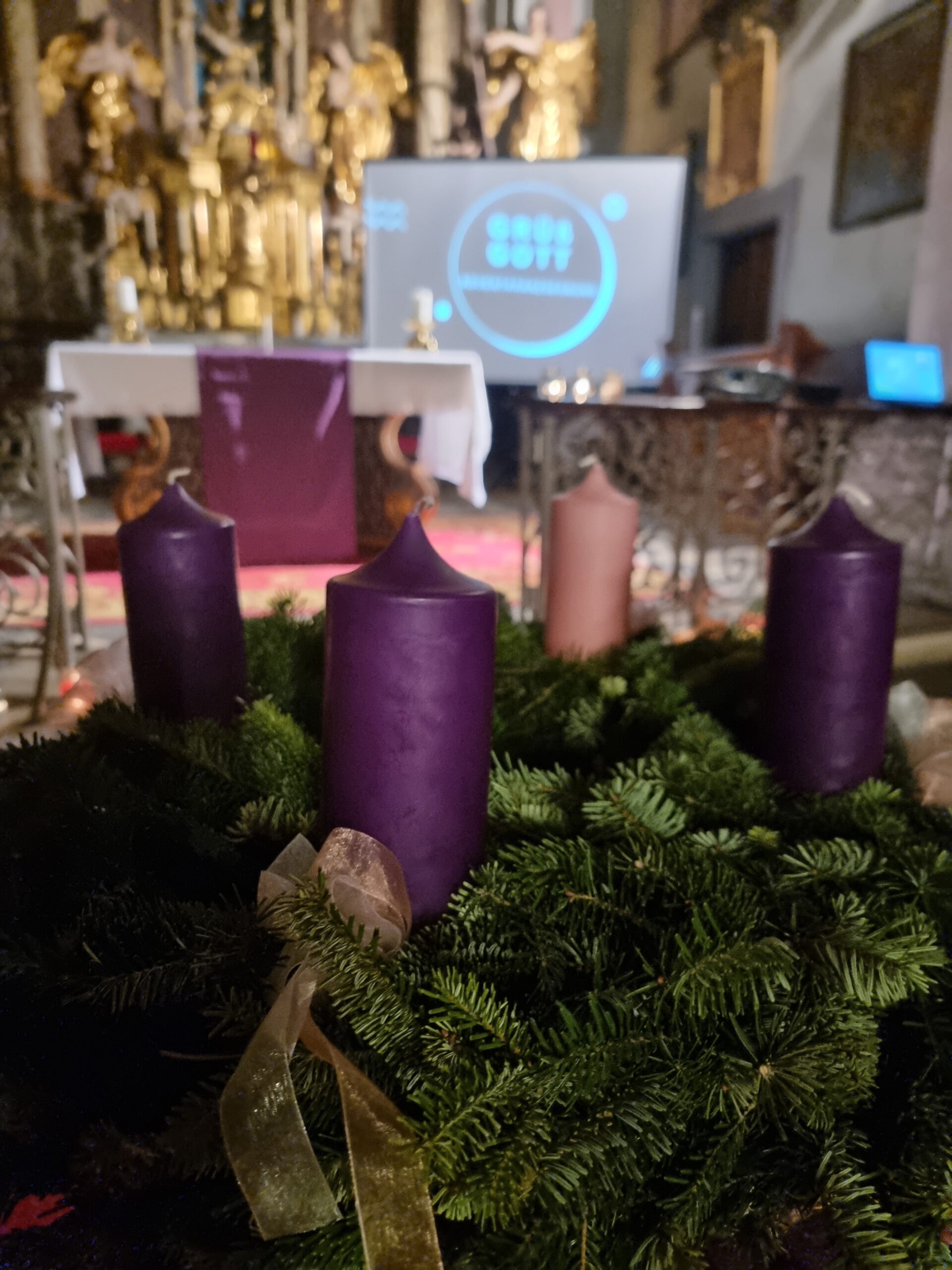 Adventkränze vor dem Altar