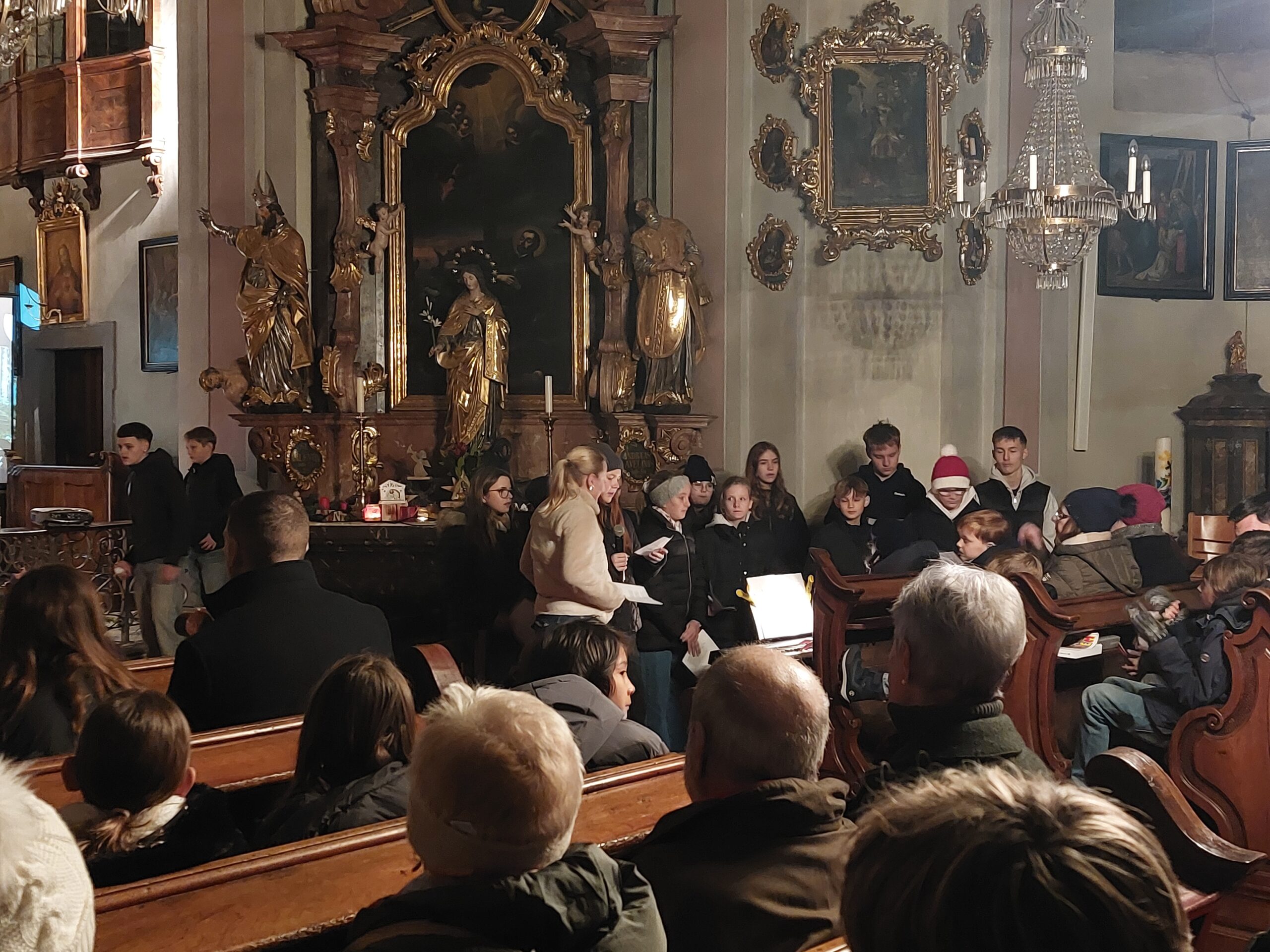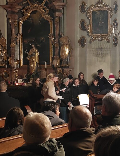 Am Freitag, dem 28.11.2025, lud das Team der MS Ehrenhausen zur Adventkranzsegnung in die Pfarrkirche. Religionslehrerin Bernadette Weiland, Pastoralassistent Markus Aitinger sowie Schülerinnen und Schüler aus allen Klassen gestalteten diesen besinnlichen Abend. Unser Schulchor unter der Leitung von SR Dipl.-Päd. Kristin Gepperth und Sänger Max Waltl sorgten für die musikalische Umrahmung dieser Adventfeier. Das gemütliche Beisammensein bei der anschließenden Agape – es gab Glühwein, Tee und Striezel – war eine gelungene Einstimmung auf die Adventzeit.
