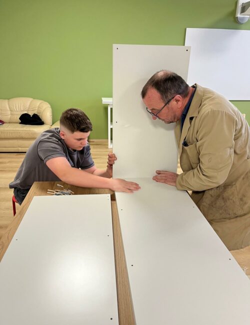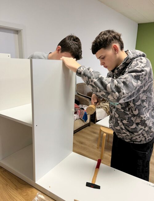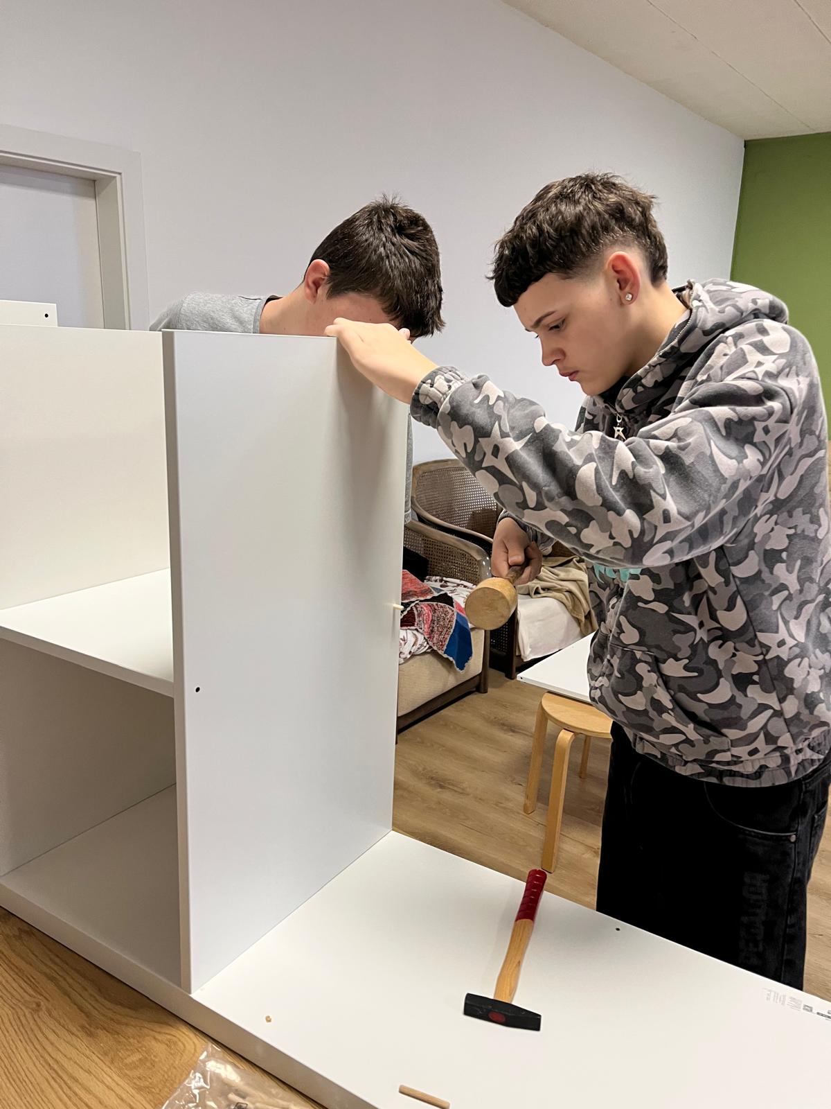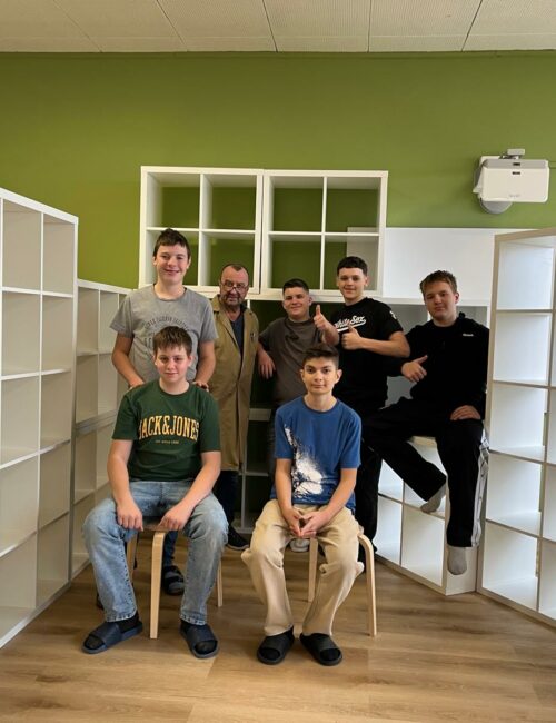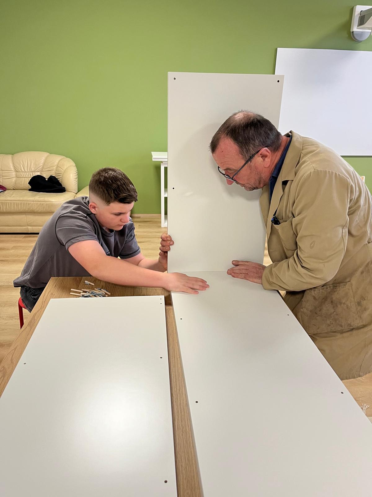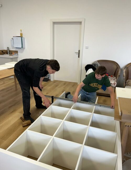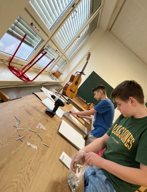 Im Rahmen eines Kooperationsprojekts bauten einige Schüler unserer 4. Klasse unter der fachkundigen Anleitung von Herrn Dipl.-Päd. Martin Wratschko Möbel für die neue Bibliothek der Volksschule Ehrenhausen zusammen.