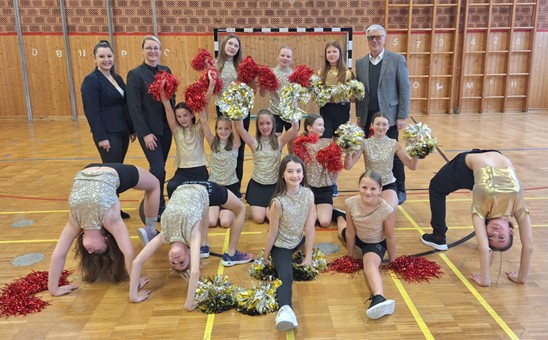 Jeden zweiten Mittwoch trainieren unsere Cheerleaderinnen fleißig und zeigen ihr Können immer wieder gerne bei Auftritten vor Publikum. So auch in diesem Schuljahr bei einer Weihnachtsaufführung und im Rahmen einer Präsentation an unserem Tag der offenen Tür.