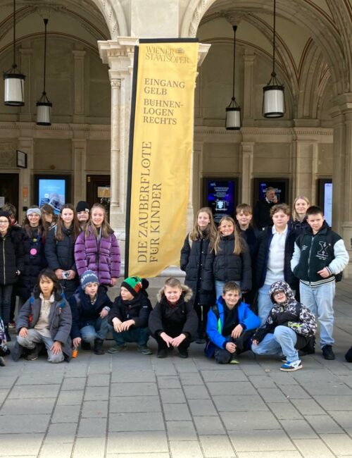 Am letzten Schultag vor den Semesterferien, unternahmen die Schülerinnen und Schüler der 1. Klassen einen besonderen Ausflug. Sie machten sich schon früh am Morgen auf, um mit dem Zug nach Wien zu fahren. Nach dem Besuch des Stephansdoms und einem kleinen Spaziergang durch die Innenstadt ging es schließlich zur Wiener Staatsoper. Gemeinsam mit etwa 3500 Kindern erlebten sie eine beeindruckende Vorstellung – „Die Zauberflöte für Kinder“. Ein Teil des Ensembles der Wiener Philharmoniker und DarstellerInnen der Wiener Staatsoper verzauberten die Kinder während der Darbietung. Mit wunderschönen Arien, erstaunlichen Lichteffekten und vielen Tieren wurde die kindgerechte Aufführung zum vollen Erfolg.